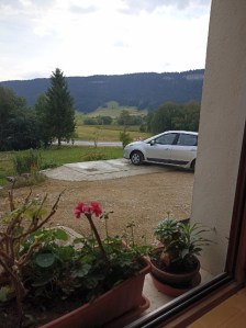 Séjour de vacances dans une vieille ferme comtoise, près de la frontière suisse. La journée fut torride, 30°. Le soir venu, nous cherchons la fraîche, à l’ombre devant la demeure. Sur le pré : une table et quelques chaises qui invitent à ce moment de repos. Une agréable petite brise vient nous rafraîchir. Le feuilles du bouleau bruissent gaiement. Les alpages sont encore inondés d’un soleil généreux.