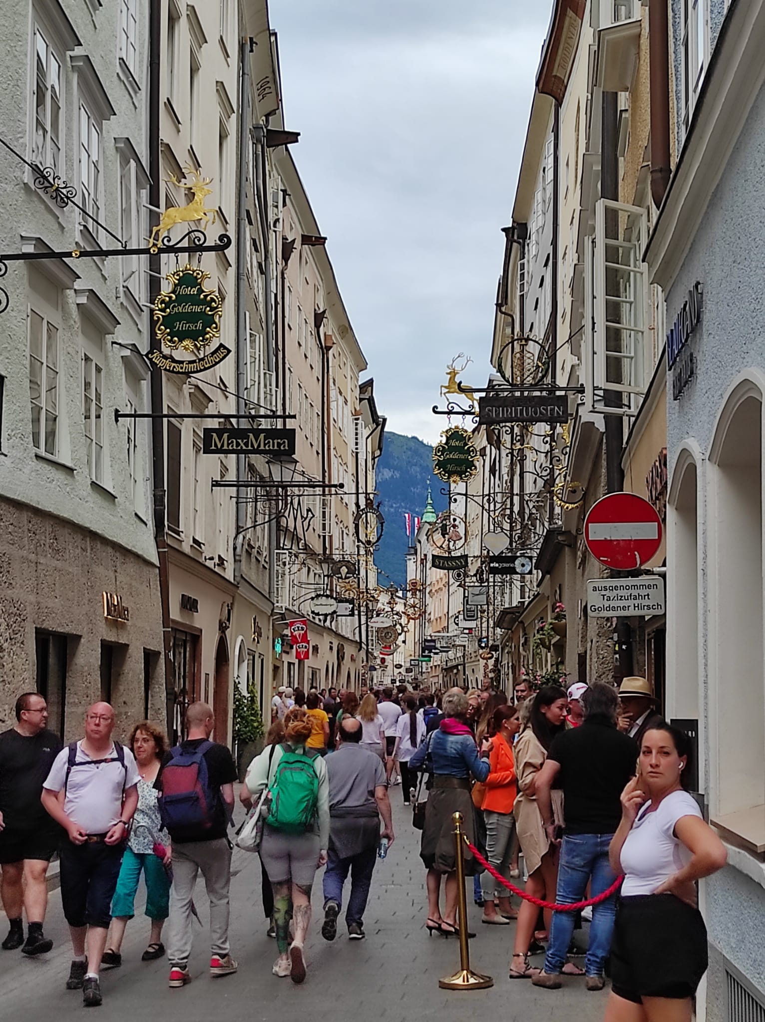 Salzburg et moi, c’est une déjà longue histoire. ( Ce billet sera assez court car je tape tout sur mon portable. ) Nous sommes logés à 15 km du lieu. Hier on a quand même fait une visite éclair à cette ville dont je suis tombé amoureux dès 1967, avec mon copain Willy décédé en 2011, venus en stop du Nord, amoureux encore en 1973, visite avec le parrain de mon fils et quasi plus vieux copain, et visite « amoureuse encore » en 1981, avec femme et mes deux enfants de 4 et 1 an.